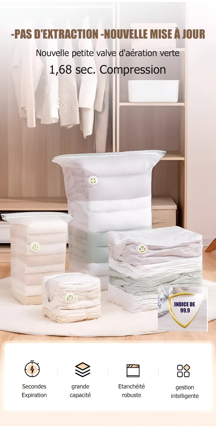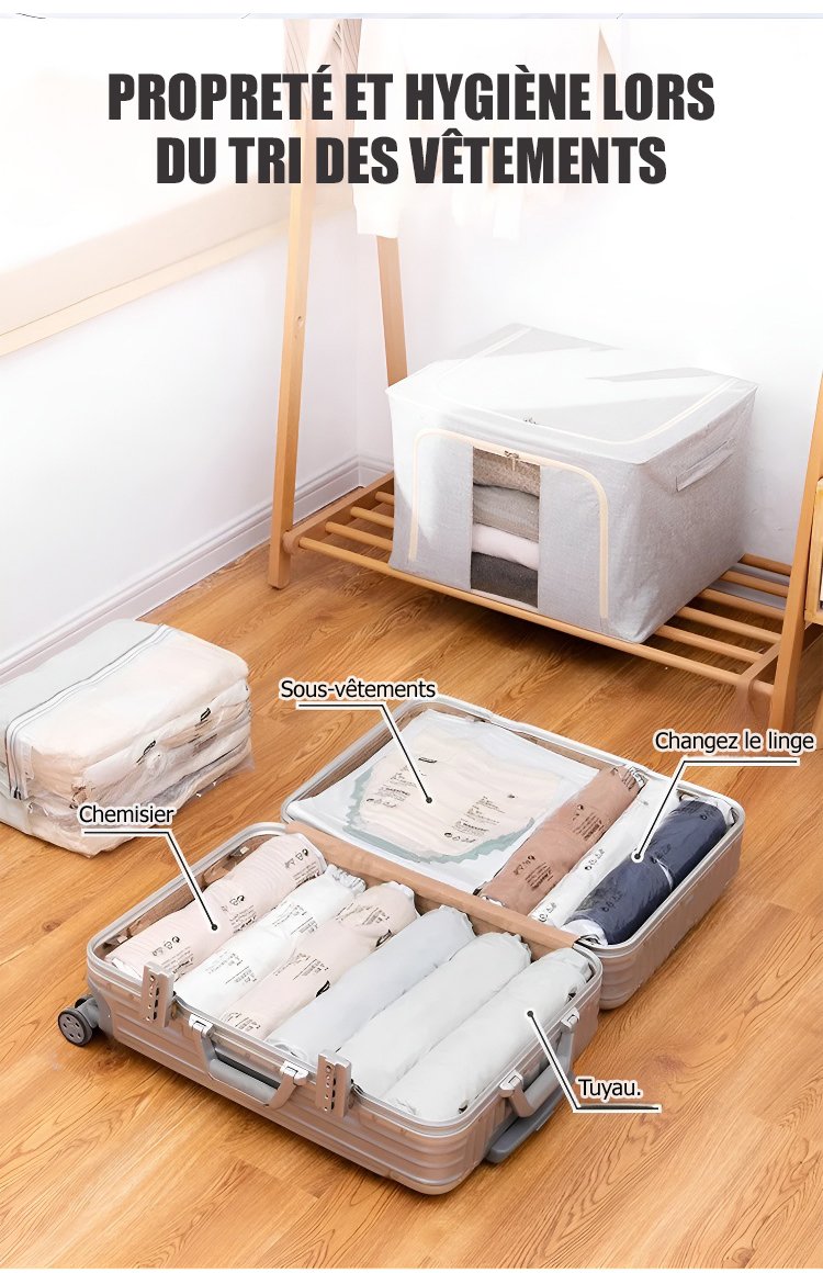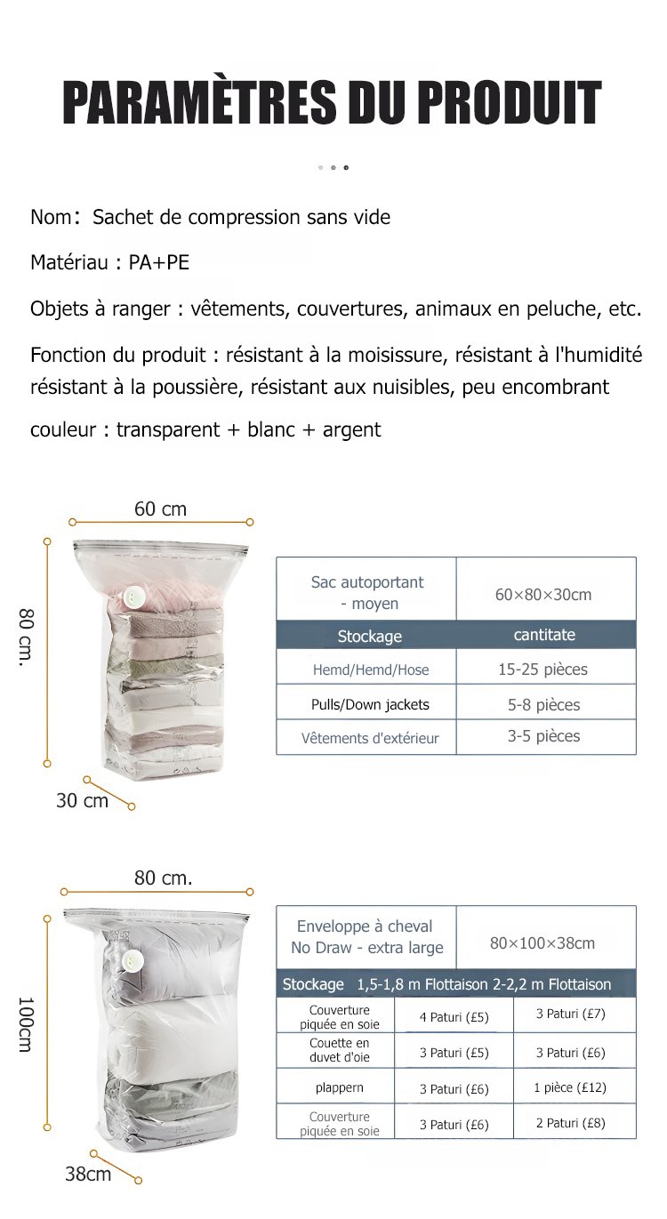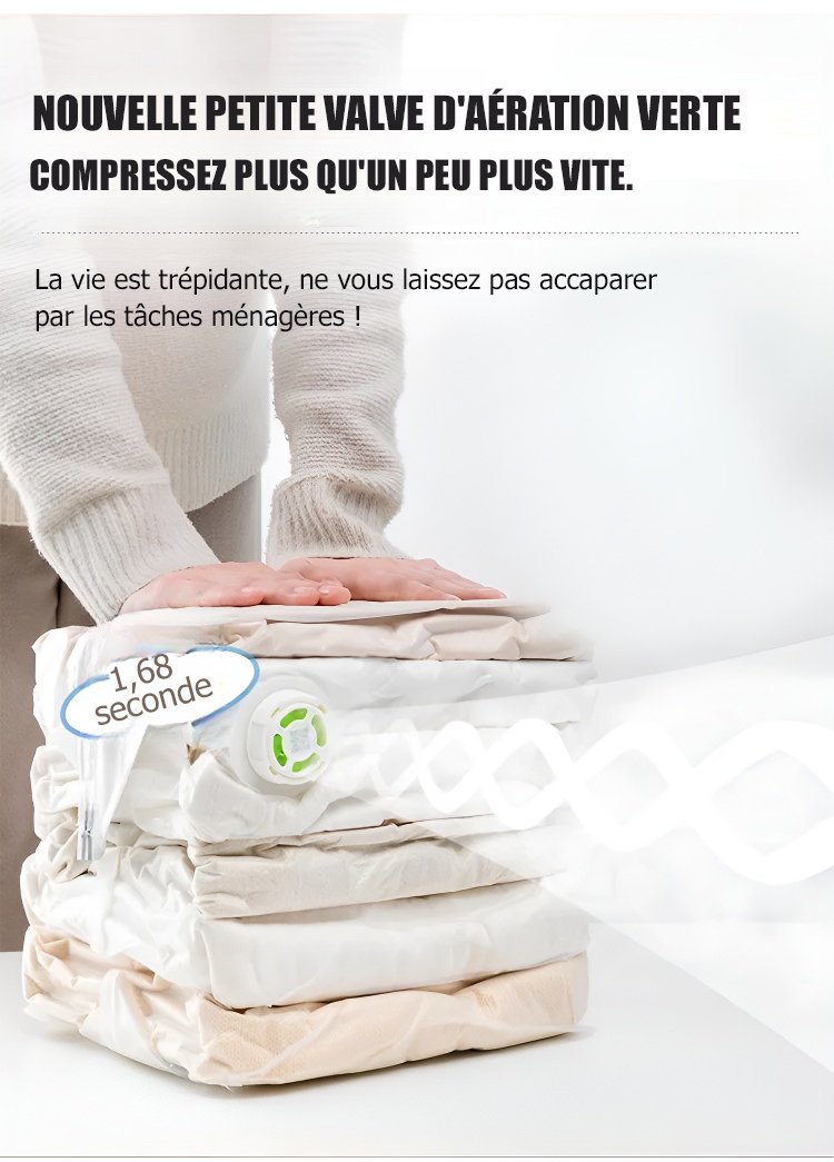 Sac de rangement tridimensionnel à compression de trois secondes sans pompe