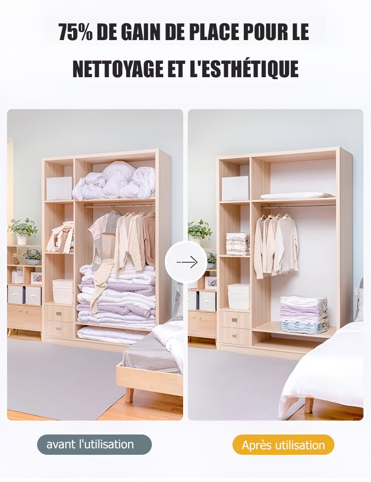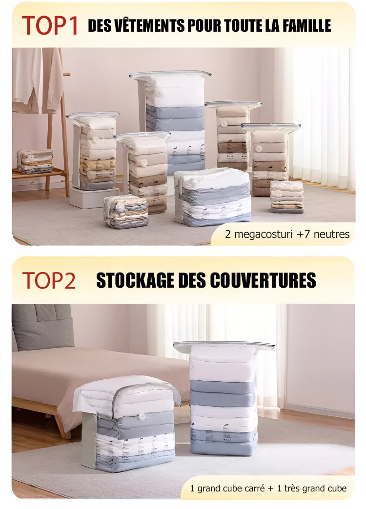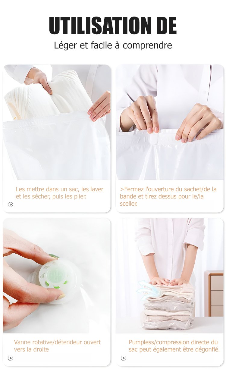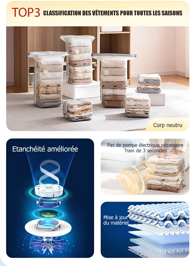 Sac de rangement tridimensionnel à compression de trois secondes sans pompe