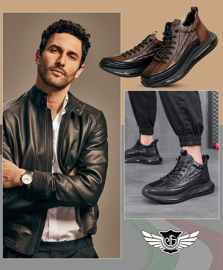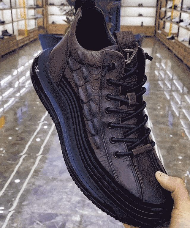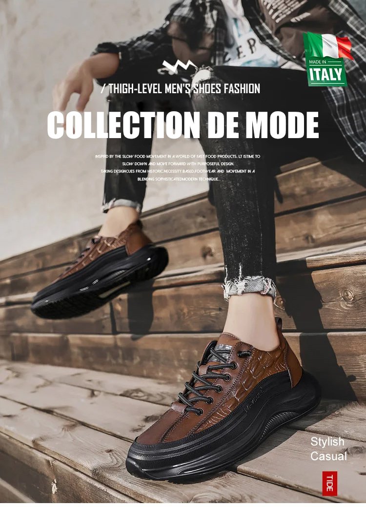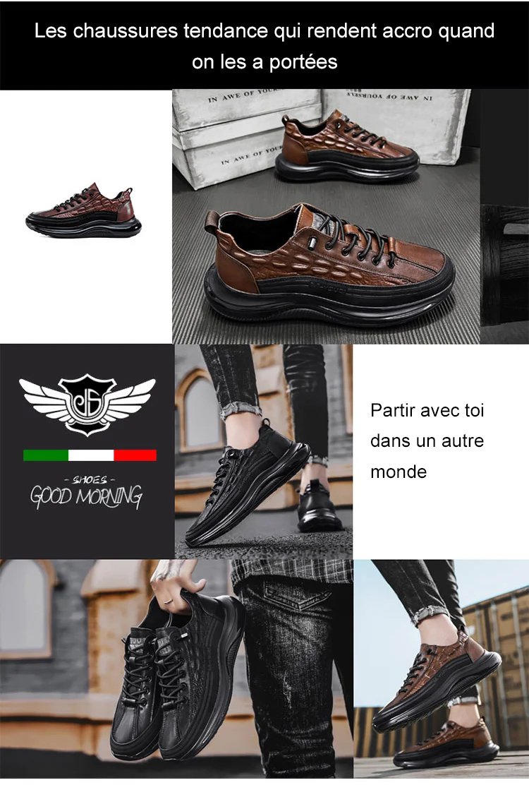 Chaussures de luxe italiennes en crocodile, à semelle épaisse et à coussin d'air, pour hommes.